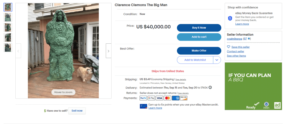 What caught our attention here was the shipping. “Shipped with USPS Media Mail.” We hope the seller really just wants local pickup and just chose an option at random and eBay filled in the rest. But there is a local pickup only option on eBay. Also media mail may be cheap but it still goes by weight and that ain’t going to be $3.49 cheap even with media mail.