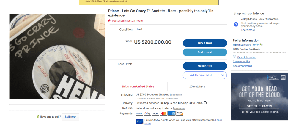 Here’s a small tip. eBay lets you add up to twelve photos. If you want to sell something for two hundred thousand dollars perhaps add a few more photos. Just pointing that out. There aren’t even photos buried in the description.