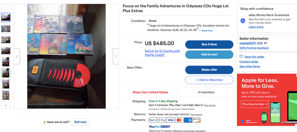We screenshotted the only picture even remotely in focus. There are nine pictures for this listing. It took us several viewings before we even realized there was branded merchandise in the photos. With that price tag you would think they would make a better effort…