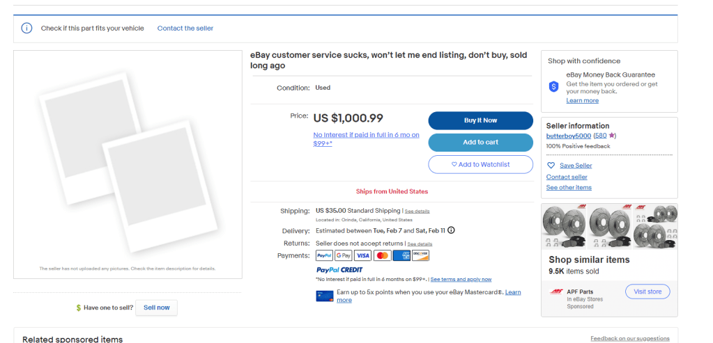 We kinda like this guy. He’s clearly having fun with this listing. Also this is basically who we assume every eBay seller is – an old white dude. But we are glad this dude seems like a fun guy.