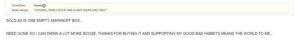 We love the title. So many sellers overuse “R@re”. This is an honest title. The only thing we can’t decide on is if we like the title or the description better.