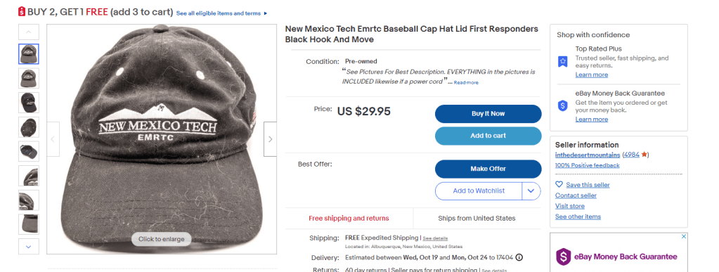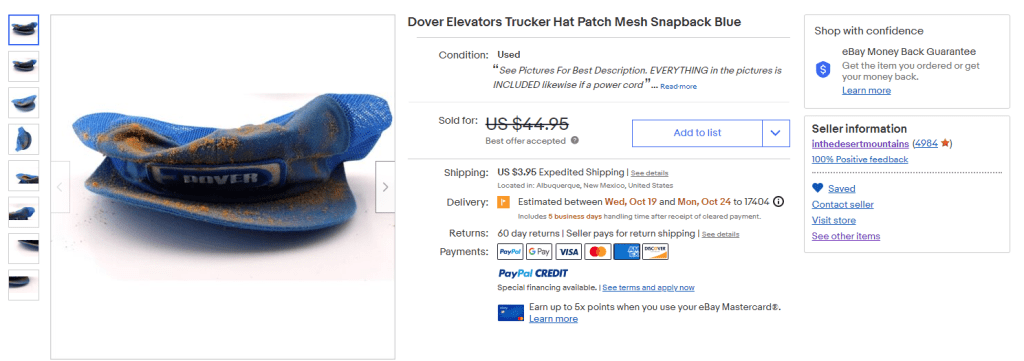 Honestly it seems like this method works for this seller. They photograph the hats as they are with no cleaning or straightening. That second listing is a sold. The expectations are on the floor so how can they disappoint? Personally we would blow off the dirt and run a cheap lint roller over any hat we were selling but it seems like that isn’t really necessary.
