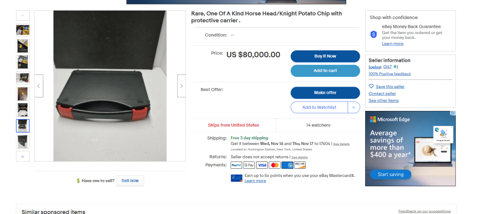 We have to admit. This seller is not horsing around. They even got the white gloves out that are featured in a photo. This costly chip even comes with a case!