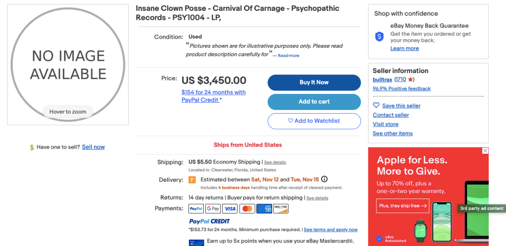 If you are asking north of three thousand dollars for something you might want to include a photo of the item but that is just insane I guess.